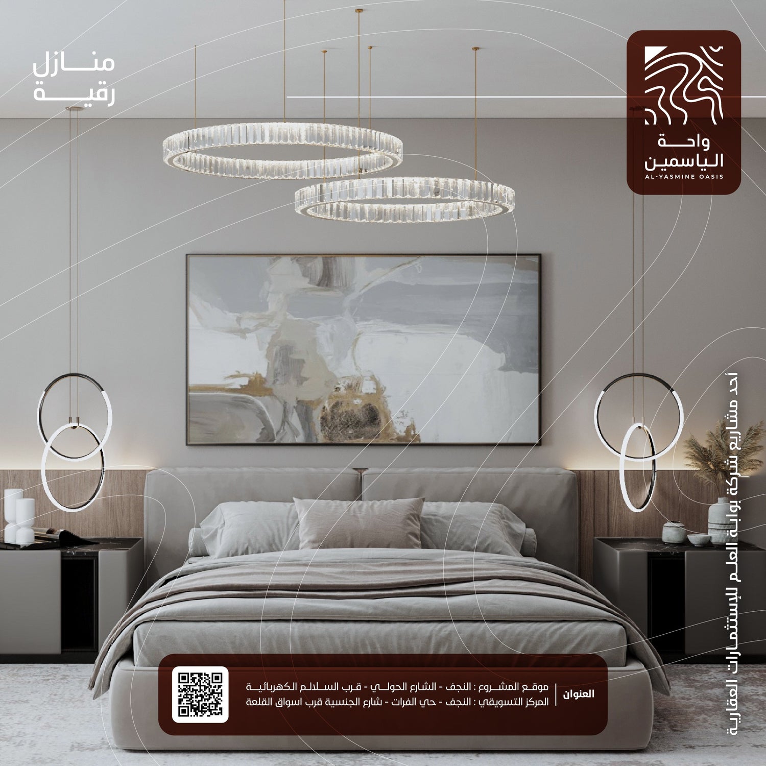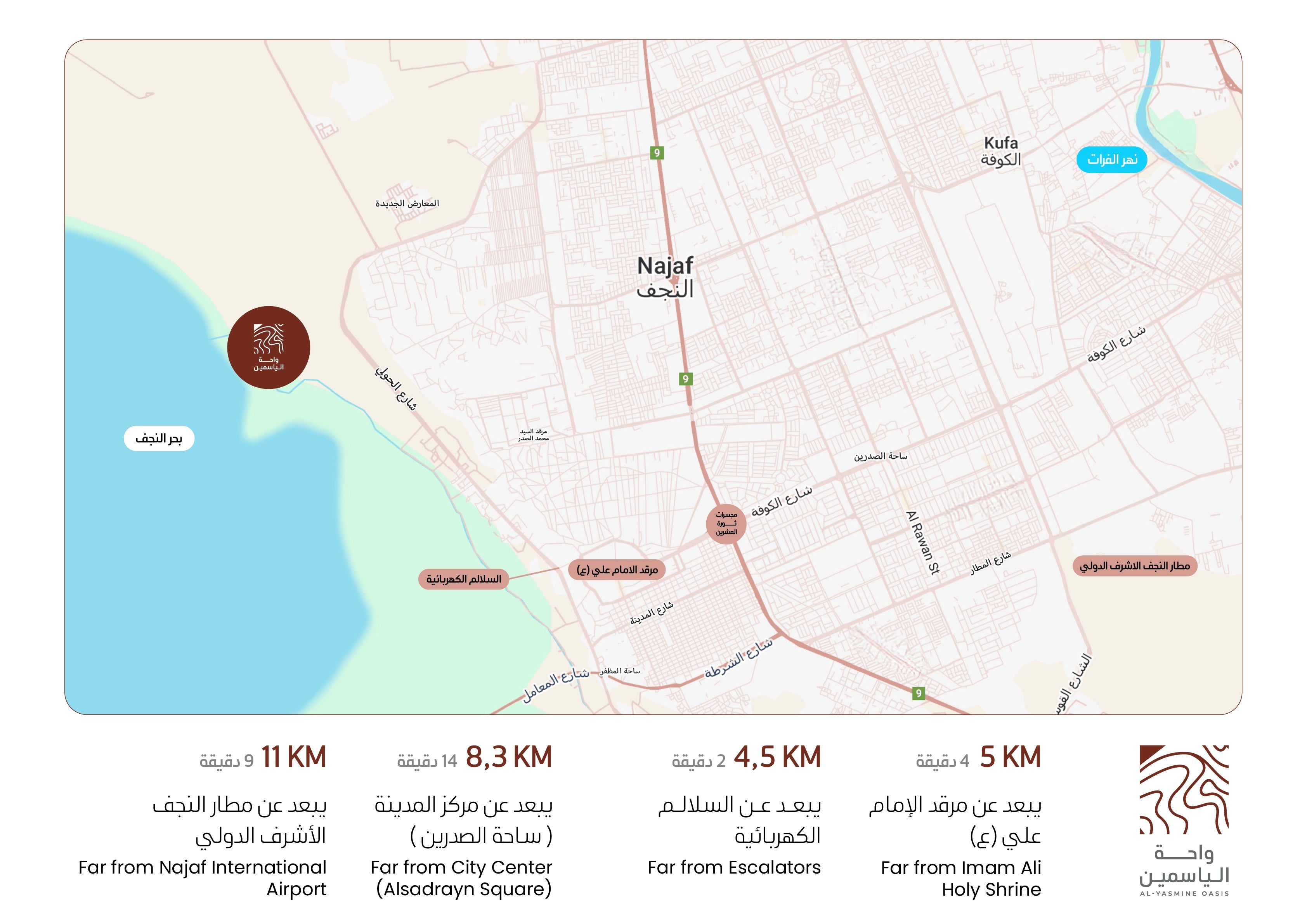 Al-Yasmeen Oasis Residential Complex boasts a strategic location near the city center and the shrine of Imam Ali ibn Abi Talib (peace be upon him), offering easy access to this significant religious landmark and a unique spiritual experience, It also features breathtaking views of the Najaf Sea, blending natural beauty with tranquility, making it an ideal destination that harmonizes sanctity with the charm of life.